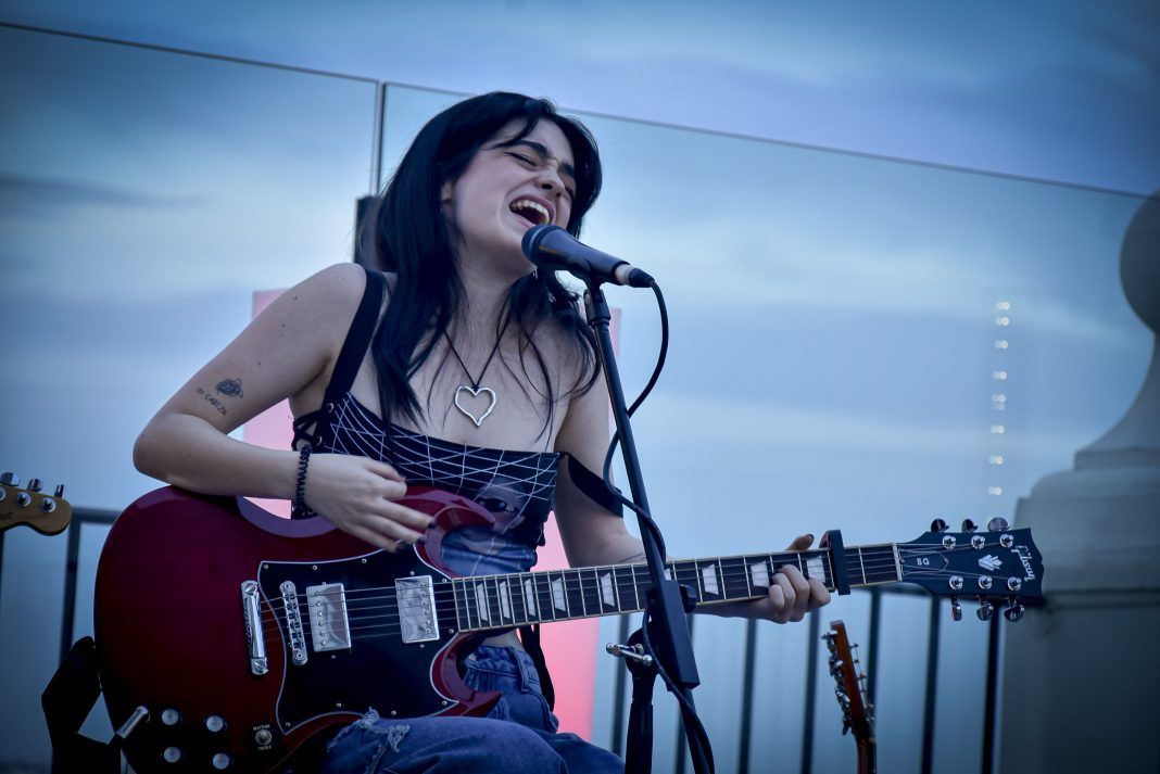 El skyline de Madrid, desde la azotea ya mítica del Hotel Ríu iluminó el anochecer con una luz que sorprende, que gusta, que se saborea y que te atraviesa el alma. Candela Gómez tiene el alma en la voz y el talento en las entrañas.