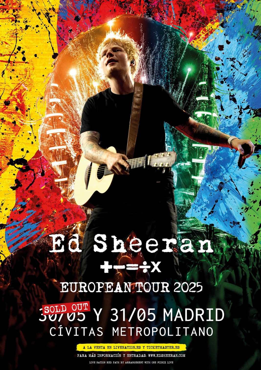 Debido a la extraordinaria demanda, Ed Sheeran anuncia nueva fecha de Mathematics Tour en Madrid el 31 de mayo de 2025. Tras agotar todas las entradas para el concierto del 30 de mayo en tan solo unas horas, el cantautor británico está listo para emocionar a sus fans con un recorrido por todos los éxitos de su década de álbumes matemáticos.