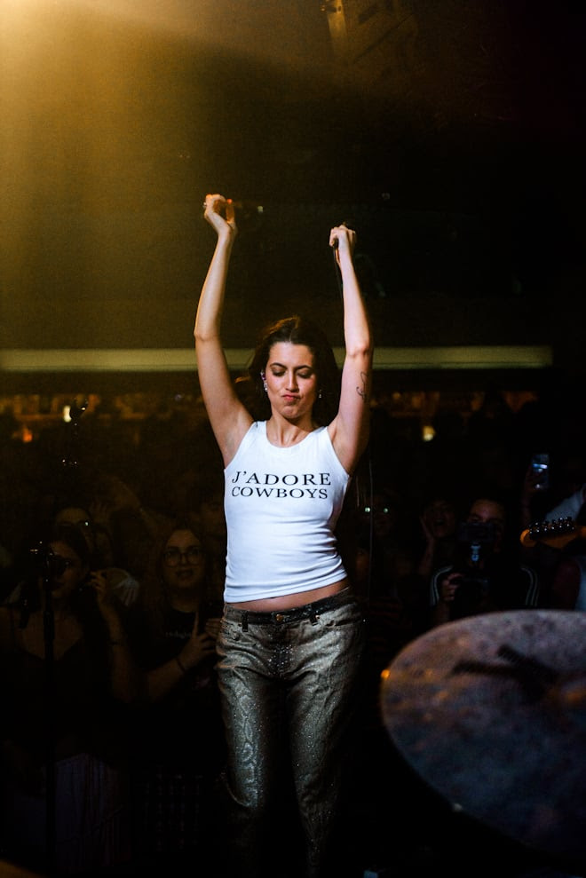 Además, no faltaron temas de su anterior EP, como la íntima y nostálgica “Noto el nudo”, interpretada en solitario al teclado, y “Kryptonita”, uno de los momentos más coreados de la noche por un público completamente entregado.