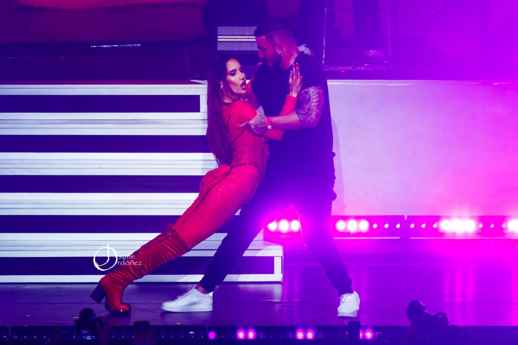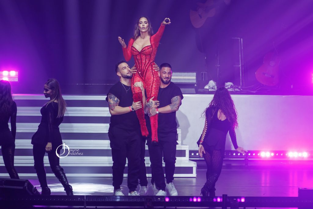 Mientras los músicos tomaban el protagonismo, India se cambió de look y regresó con chaqueta de cuero negra para interpretar Loco junto a su baterista. Tras otro breve descanso para beber agua y recargar energía, volvió la bachata con Las burbujas del jacuzzi, manteniendo la complicidad con sus bailarines.
