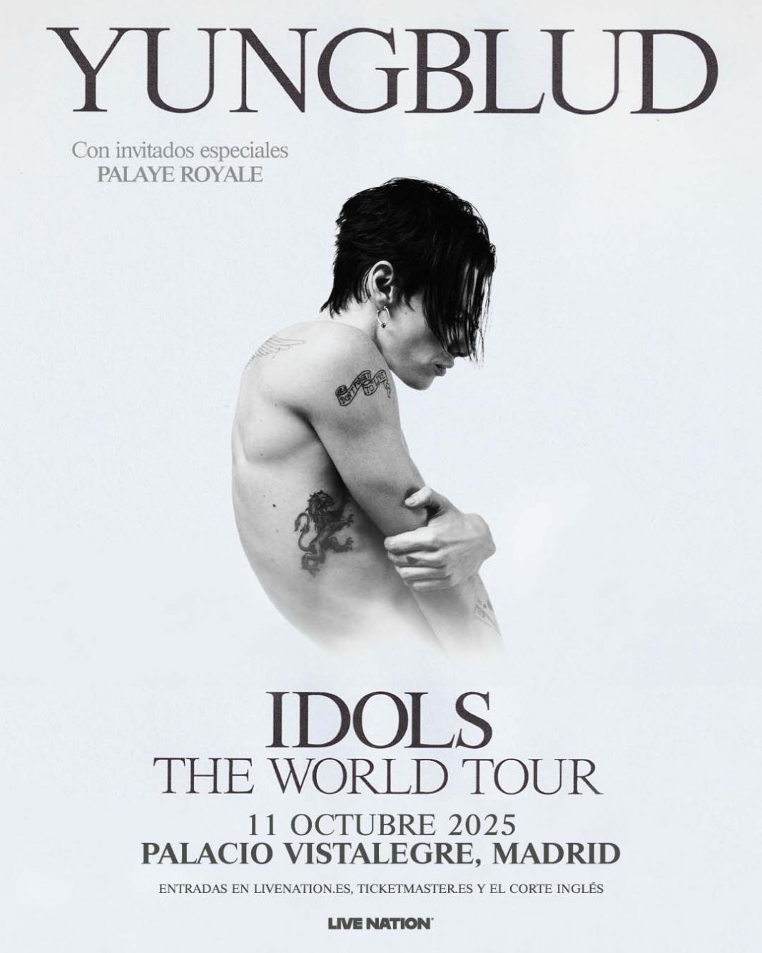 YUNGBLUD, el artista transgresor de Doncaster, llevará su gira IDOLS World tour a nuestro país con una fecha única para celebrar su esperado cuarto álbum: Idols. Con un sonido que desafía los géneros, el artista británico actuará en el Palacio Vistalegre de Madrid el 11 de octubre de 2025.